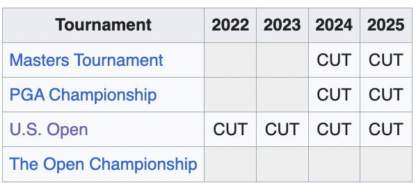 Dunlap has played in eight majors. Six of them as a professional. Granted, the results haven’t been pretty. Like, at all. He has also played in one Players Championship; he also missed the cut.