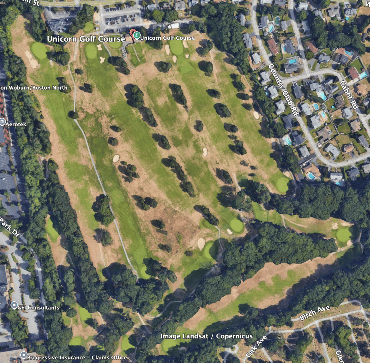 Unicorn Golf Course was originally an 18-hole private course opened in 1928 by the Boston Athletic Association (hence the Unicorn, which is the BAA logo). It was designed by Waynes Stiles and John Van Kleek. When the town bought it in 1972, it became a nine-hole course.