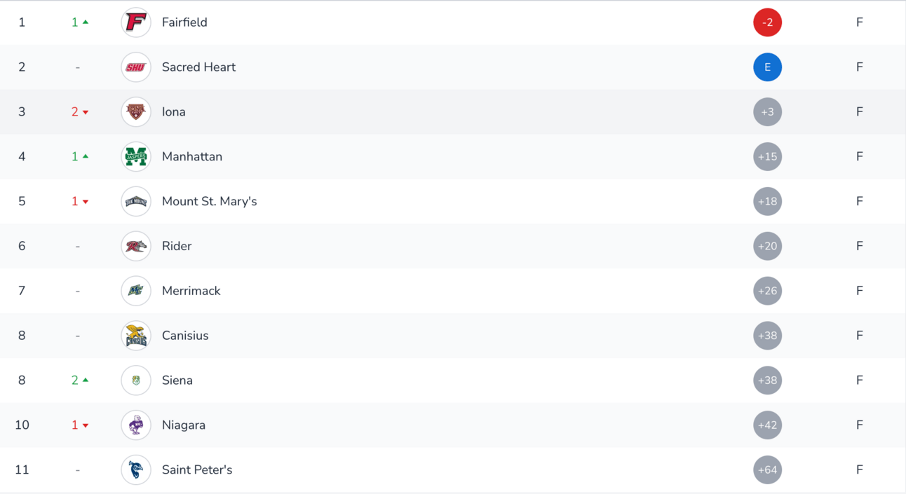 Fairfield won the event by two shots over Sacred Heart.