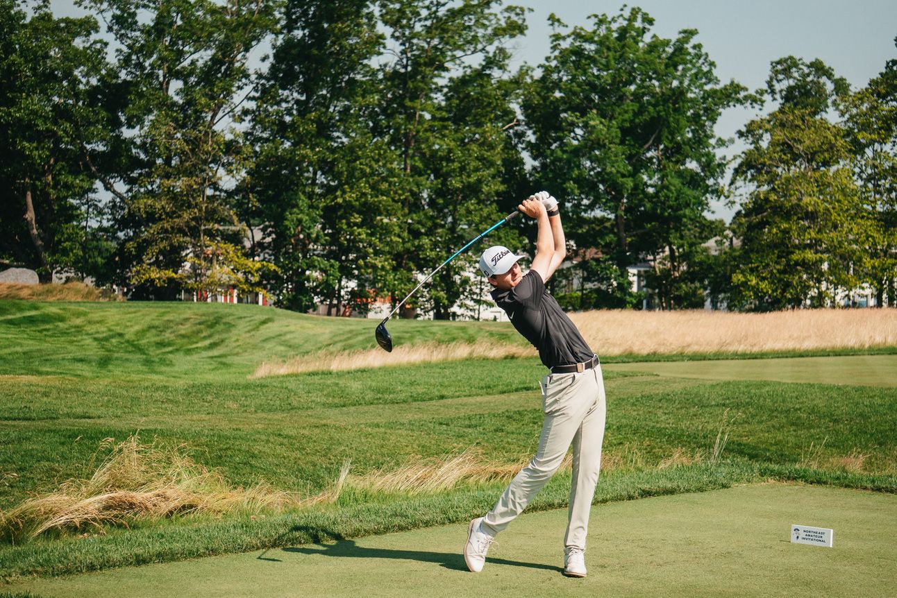 Ryan Downes of Vanderbilt hits a shot in the 2024 Northeast Amateur.