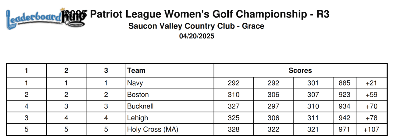 Boston University and Holy Cross both competed in the Patriot League Conference championship. BU finished in second place, 38 shots behind Navy who dominated the event at Saucon Valley CC. Holy Cross had a tough week and finished in fifth place.