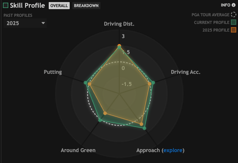 Thorbjornsen has steadily improved each facet of his game. The DataGolf comparisons between last year and this year are promising.